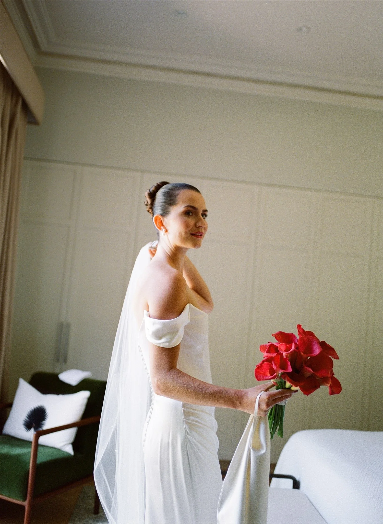 Enjoy this classic and elegant wedding hosted privately on Clarke Island. It’s a mix of digital and medium format film. The brief was to capture the day in a classic but raw style. The framing is simple and straightforward but it was shot with such a disregard for perfecting composition in favour of raw moments and expression. You will notice Mia’s relationship with her parents is special and evident through the morning, the boat ride and the reception. Tom is in awe of Mia and holds his emotions close to himself. We had the idea of capturing the dancefloor with a 90’s “gotcha” paparazzi style. The colour tone we chose to present these in was a crisp film look.