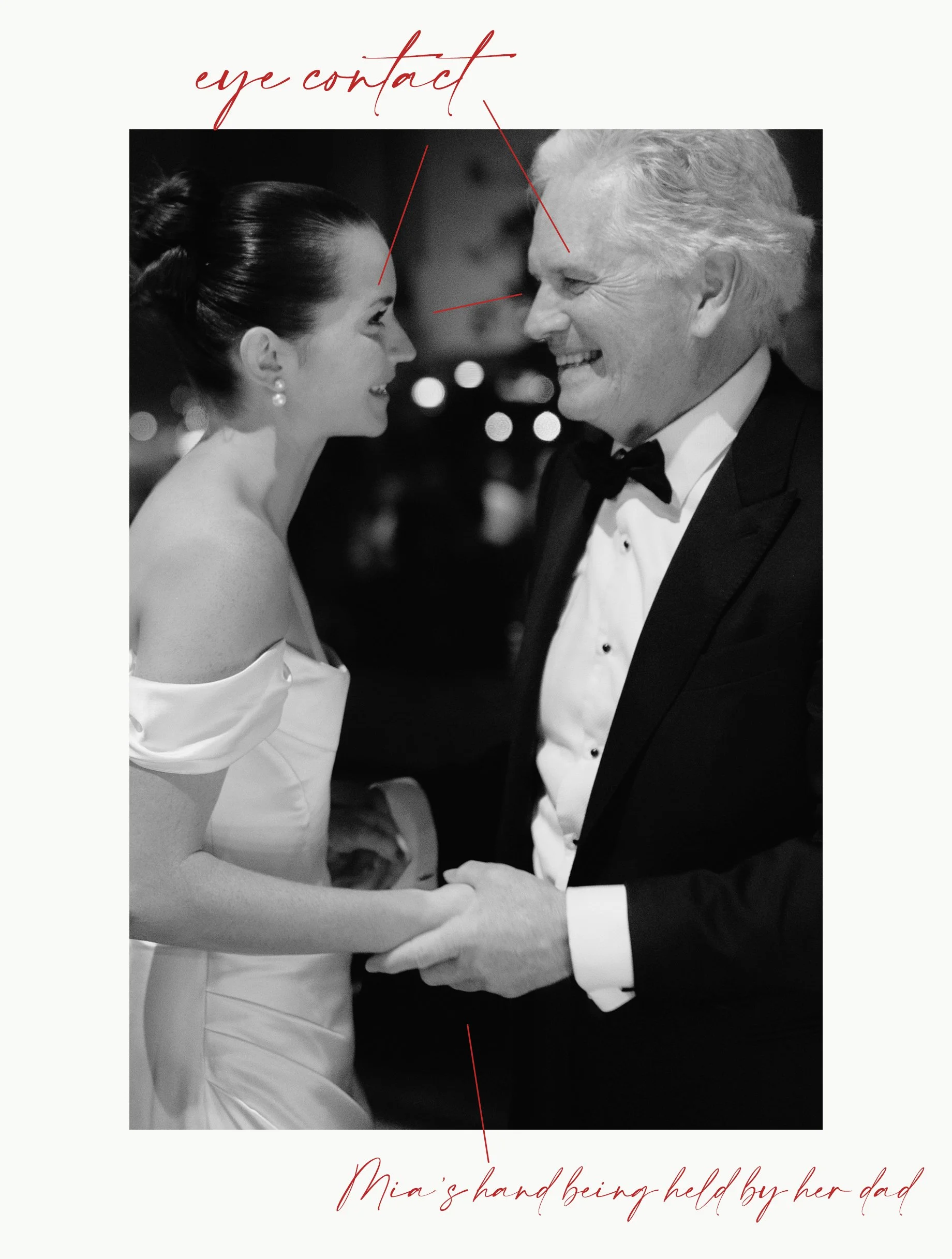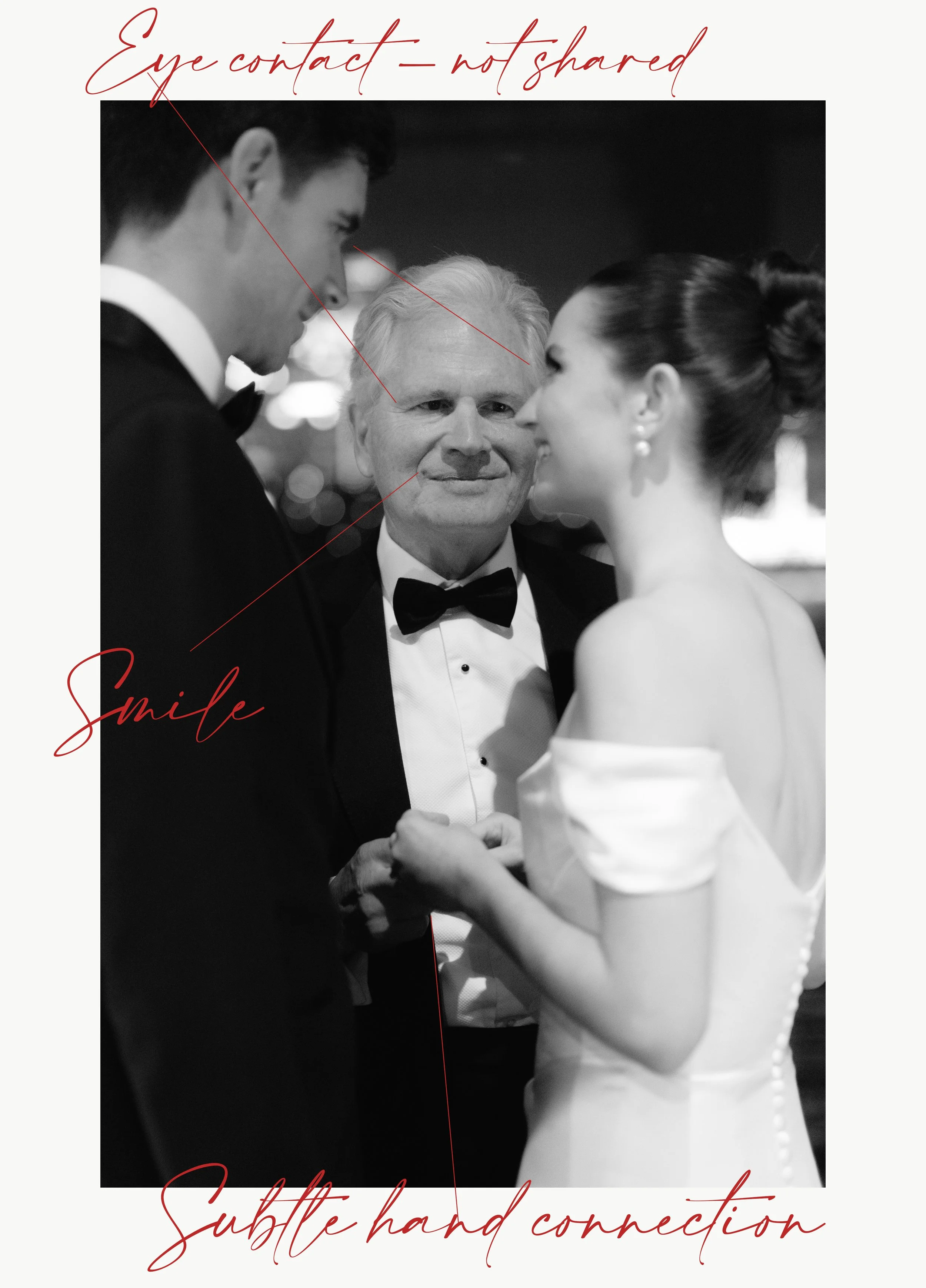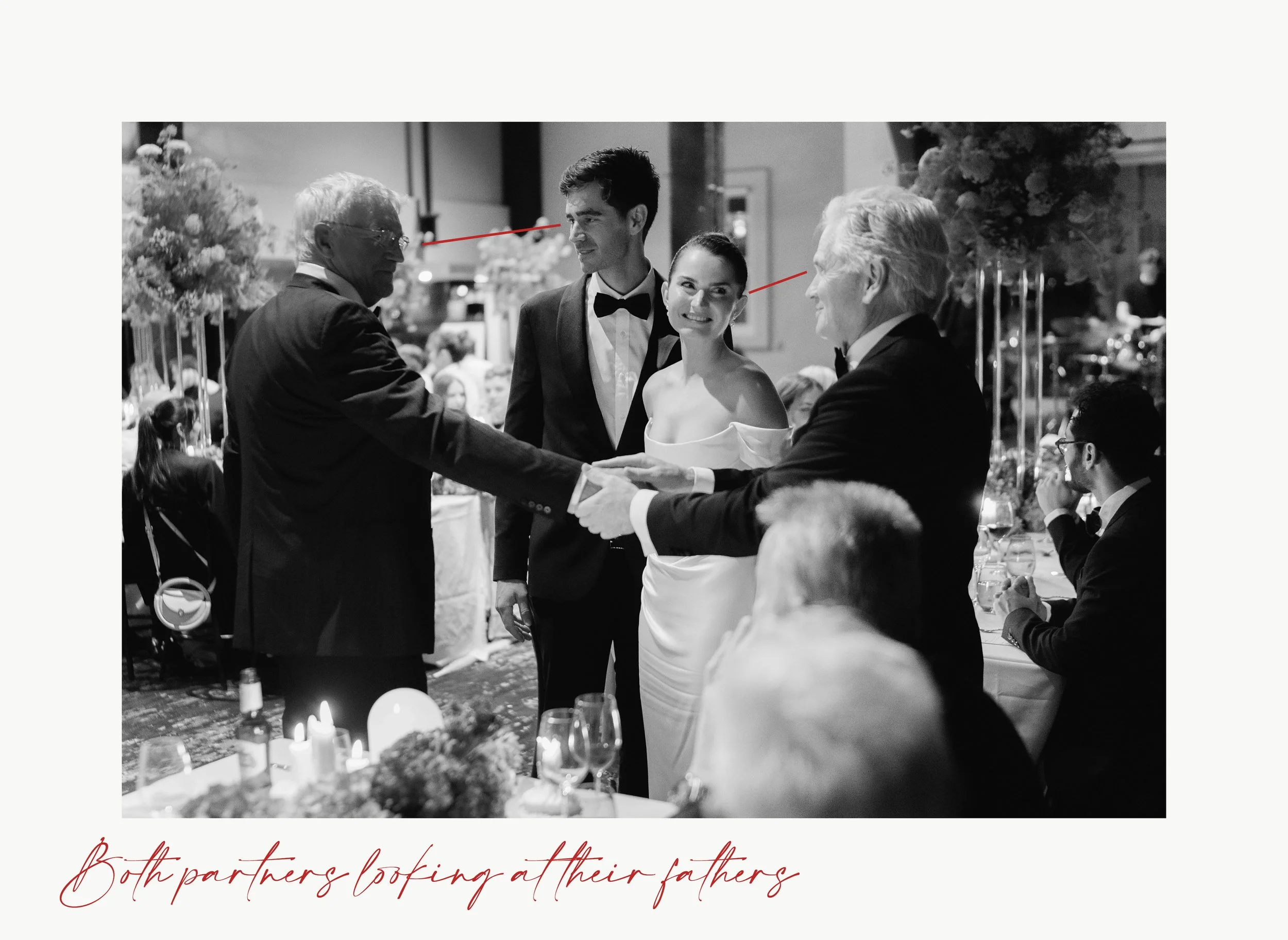 It is an undeniable impact that the parents role creates a framework for meaning. The way the couple are looking at their fathers interact is profound from the perspective of a moment that may not happen again within a context of this commitment.